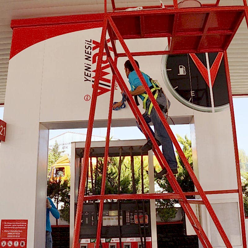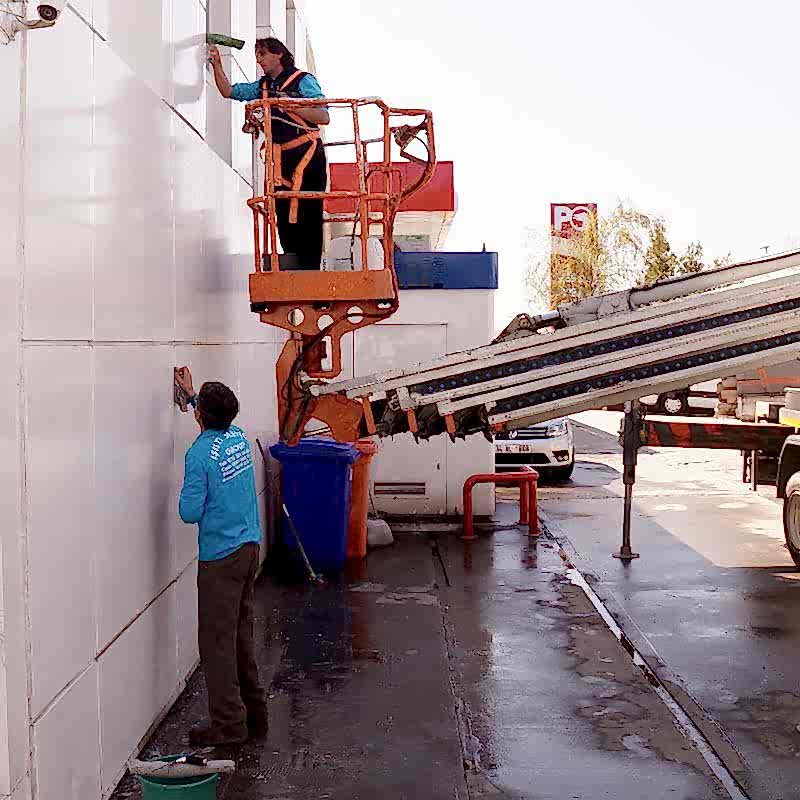 Benzin istasyonu temizliğinde kimyasal kullanımı. Kullandığımız temizleyiciler, çevre dostu olup zararları en minimize düzeydedir. Korozyon oluşturmadığı gibi yağı ve kiri hızlı söker atar. Kolu ve bedeni yormaz.